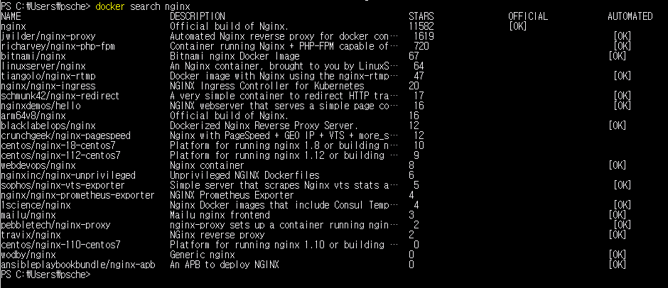 - docker hub에 공개되어 있는이미지를 검색할 경우 사용