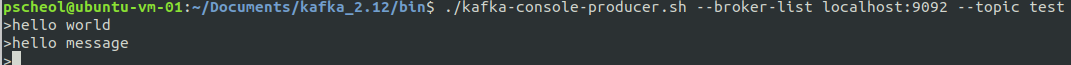 $ ./kafka-console-producer.sh --broker-list localhost:9092 --topic test hello world hello message