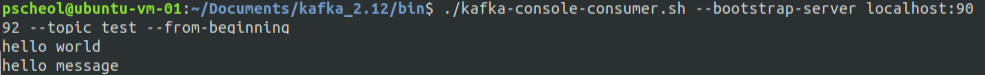 $ ./kafka-console-consumer.sh --bootstrap-server localhost:9092 --topic test --from-beginning
