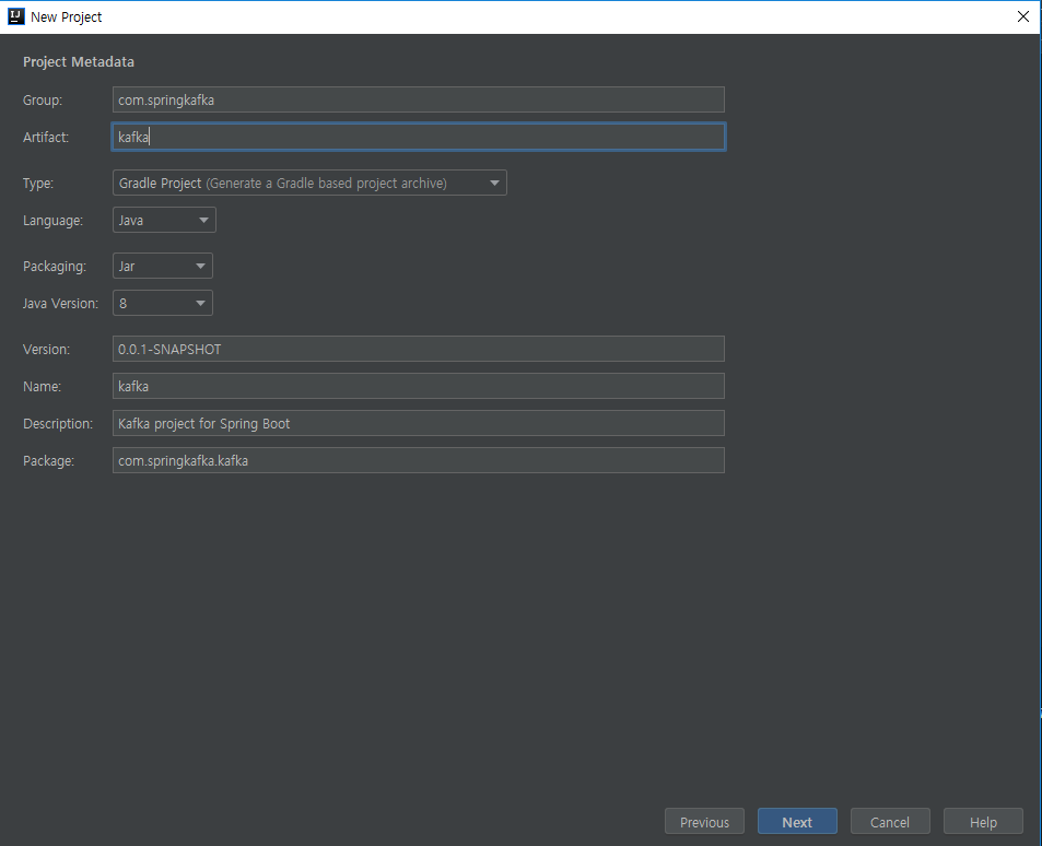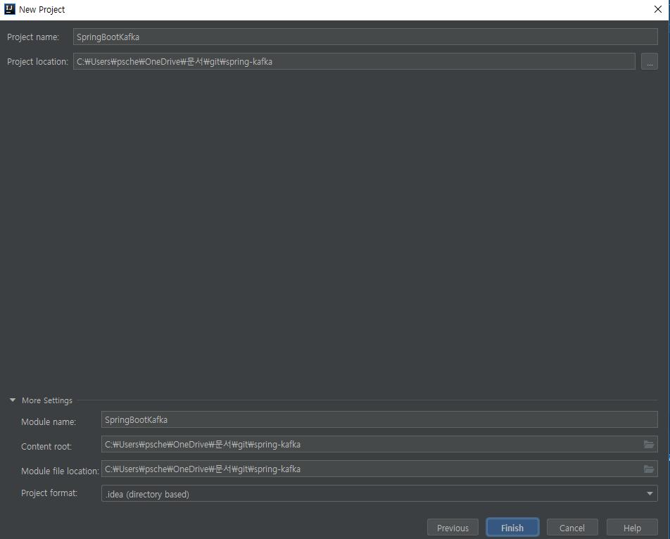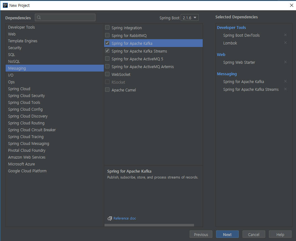 - Messaging > Spring for Apache kafka, Spring for ApacheKafka Streams 선택