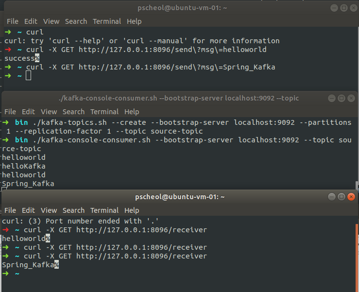 ## /send?msg 요청 $ curl -X GET http://127.0.0.1:8096/send?msg=helloworld ## /receiver 요청 $ curl -X GET http://127.0.0.1:8096/receiver