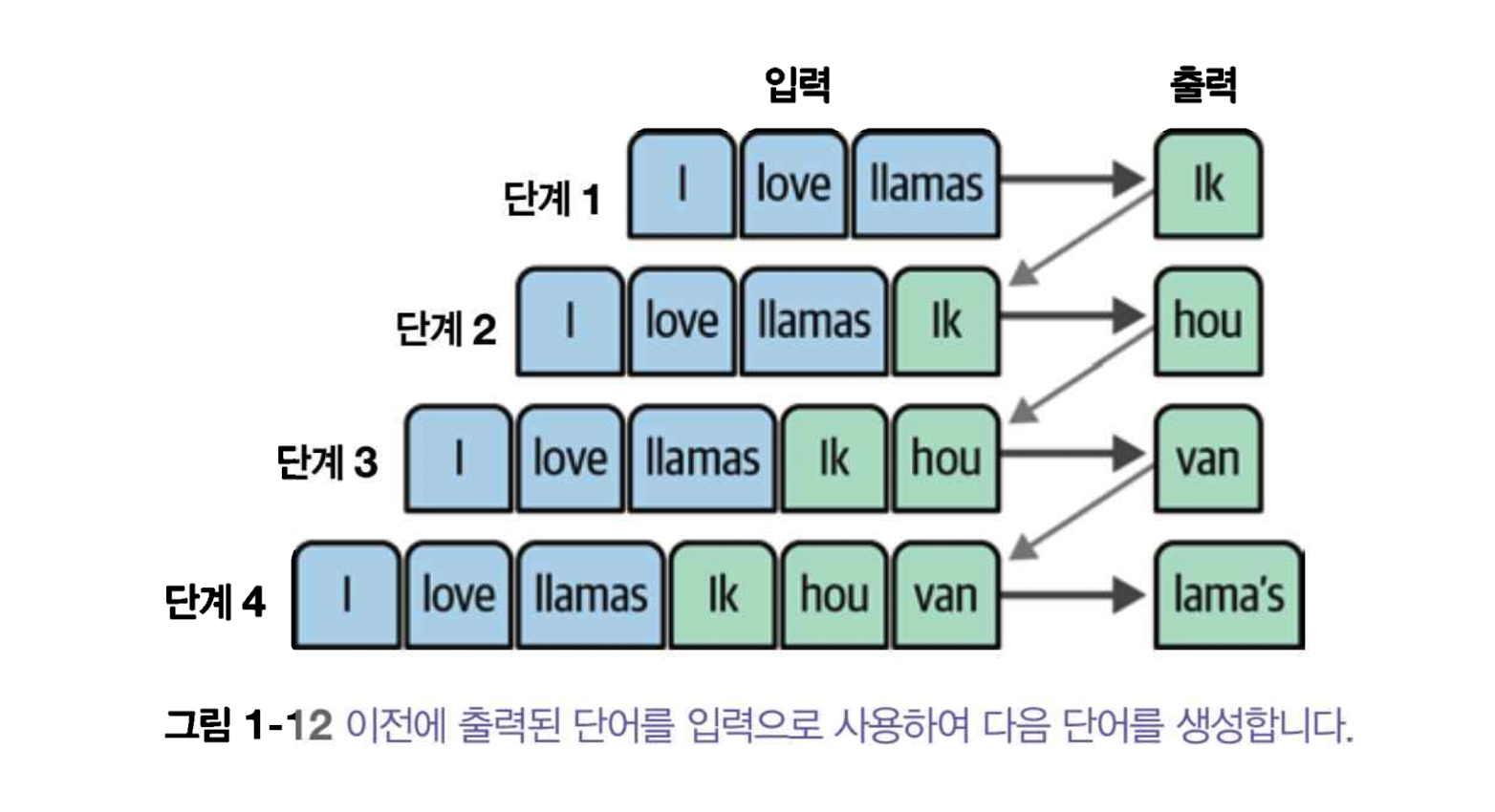 이 구조에서 각 단계는 자기회기적(autoregressive)이다. 즉 이전에 생성한 단어를 사용해 다음 단어를 생성