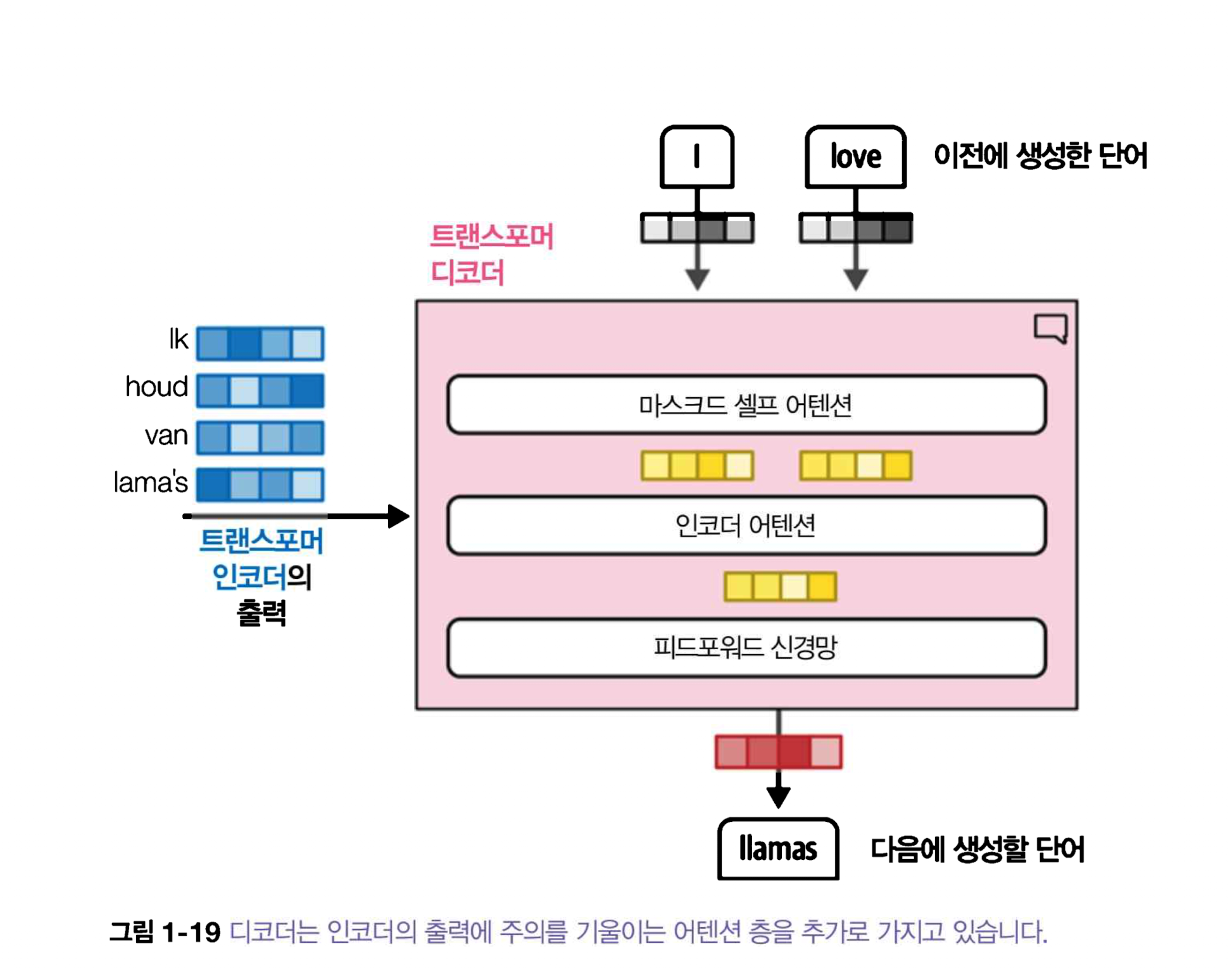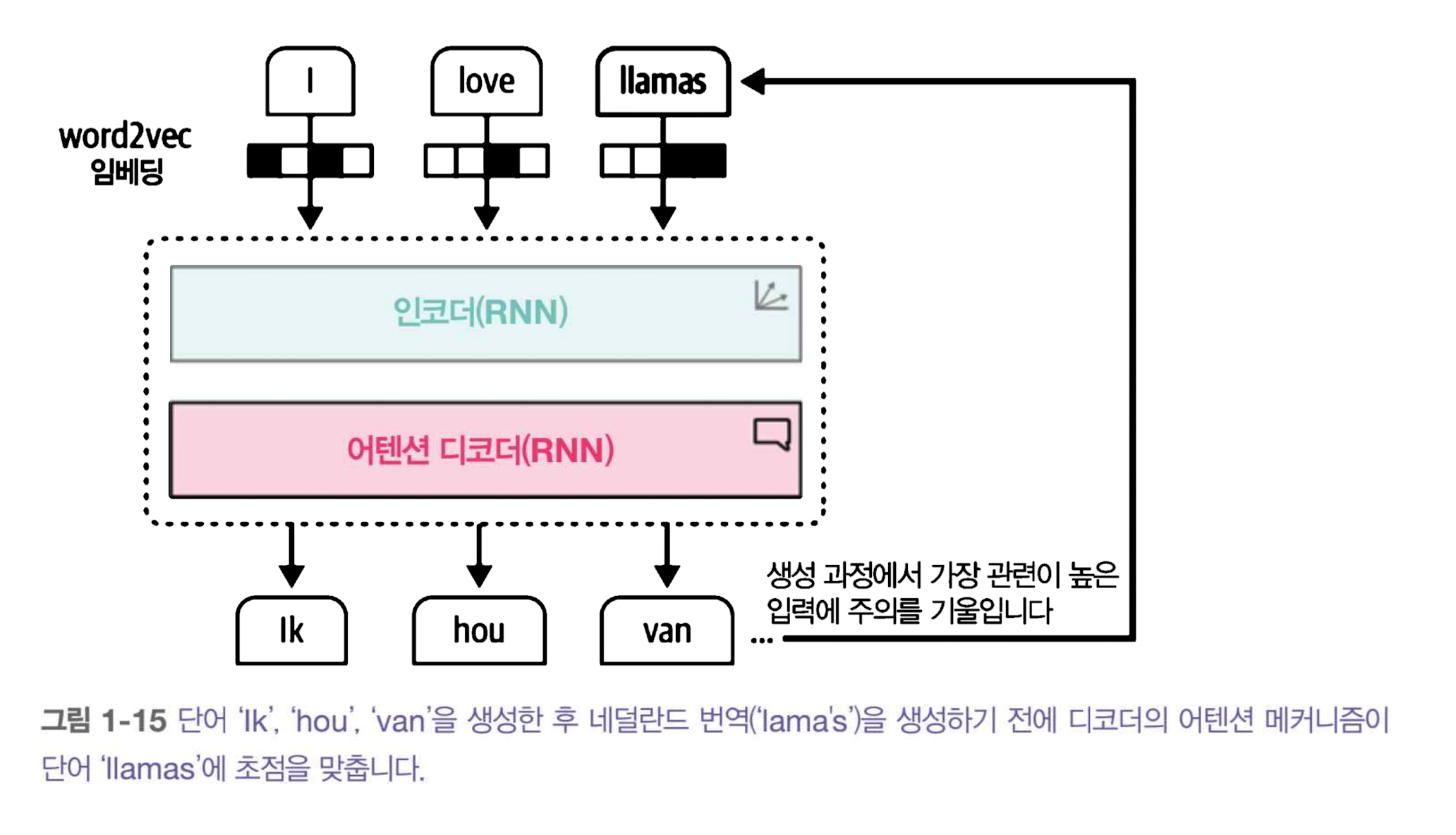 디코더는(입력에서 관련된 부분을 찾기 위해) 인코더의 출력에 주의를 기울이는 별도의 층이 추가