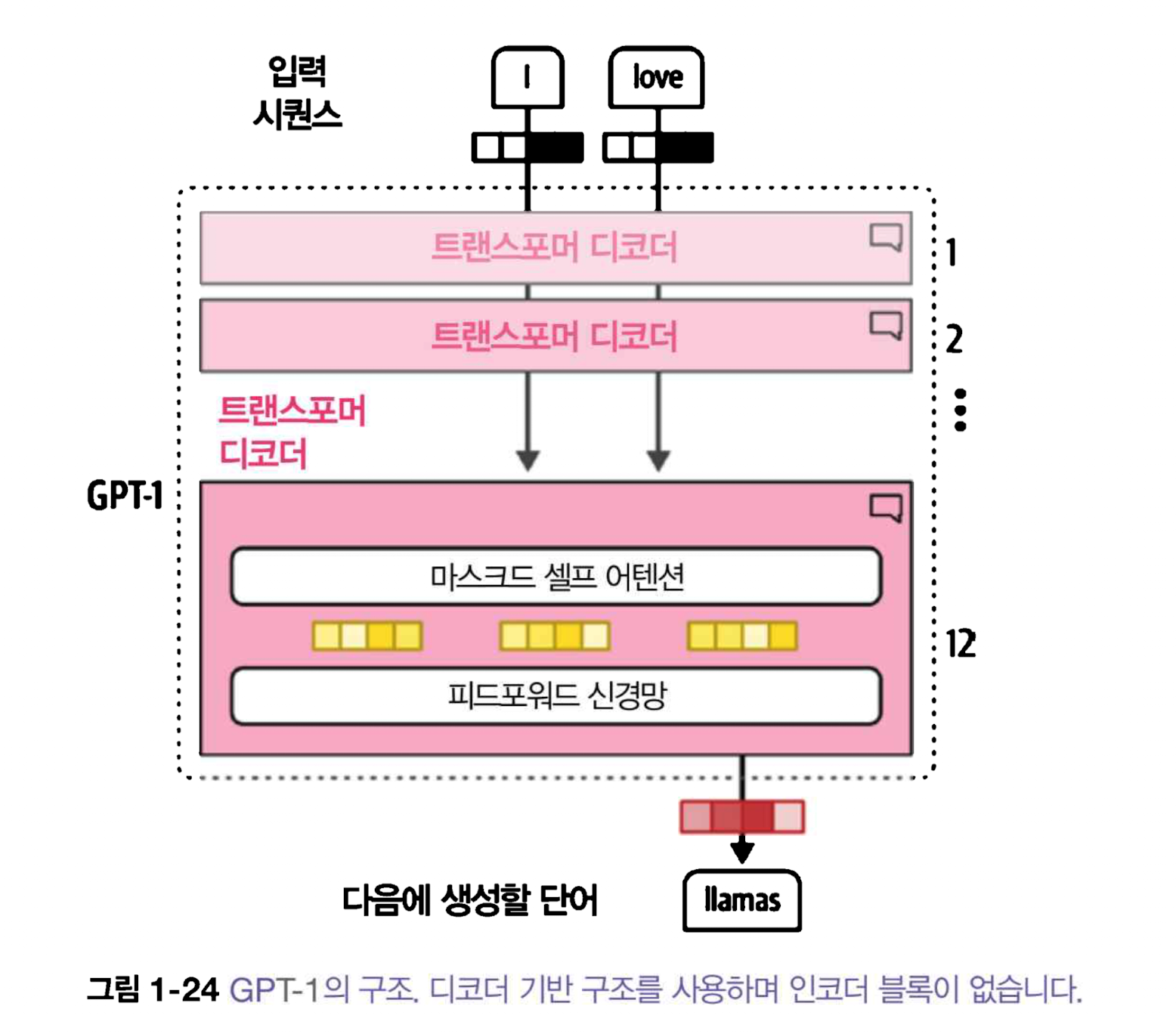 이런 구성 요소가 합쳐저서 트랜스포머 구조가 만들어지며, 이 구조를 통해 BERT와 GPT-1 같은 언어 AI 분야에 영향을 끼친 많 은 모델의 기반을 이룬다.