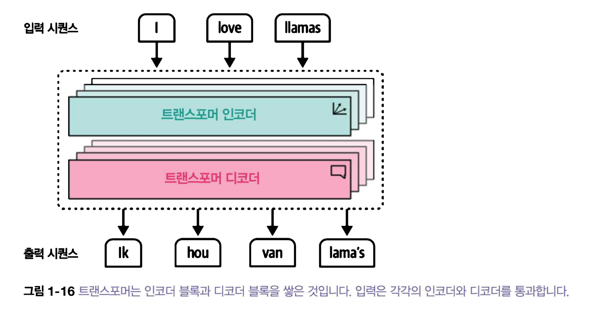 인코더가 입력을 이해하고, 그 이해한 내용을 바탕으로 디코더가 새로운 문장을 생성하는 복합구조다.