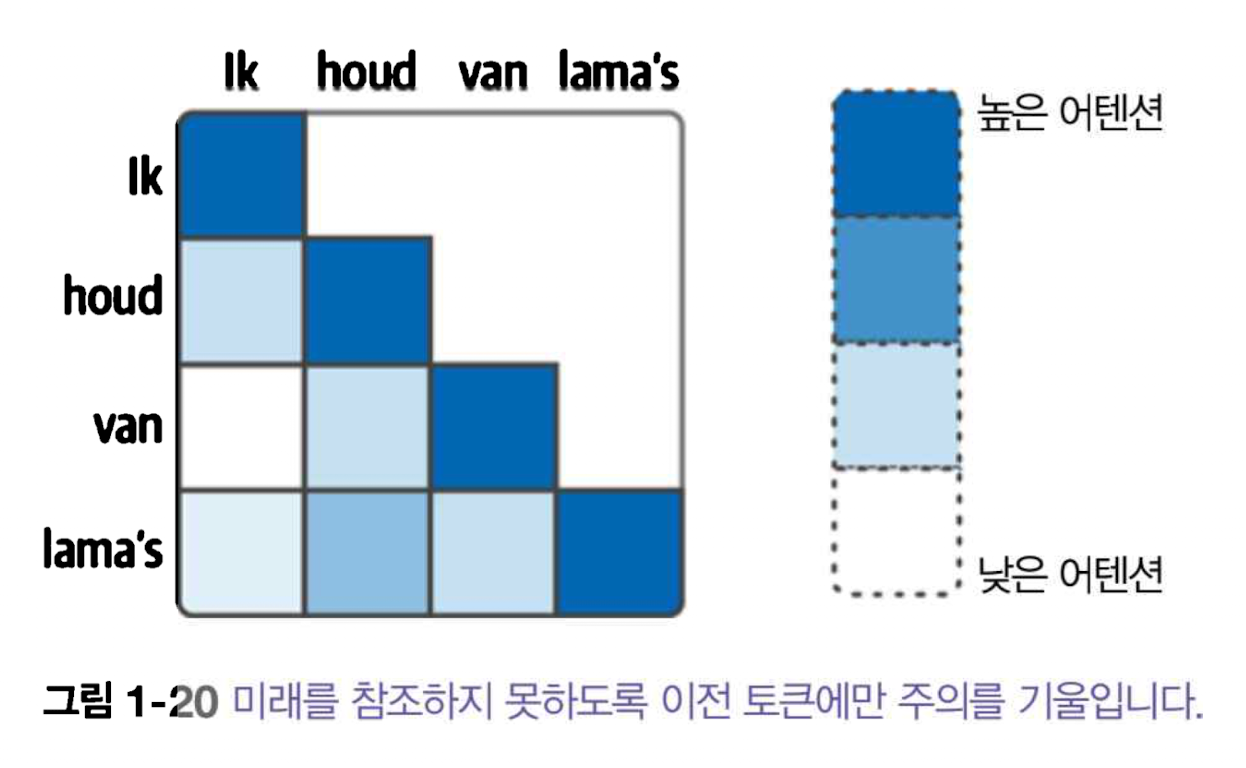 디코더의 셀프 어텐션 층은 미래의 위치를 마스킹(Masking)하여 출력을 생성할 때 정보 누출을 방지하기 위해 앞선 위치에만 주의를 기울일 수 있다.