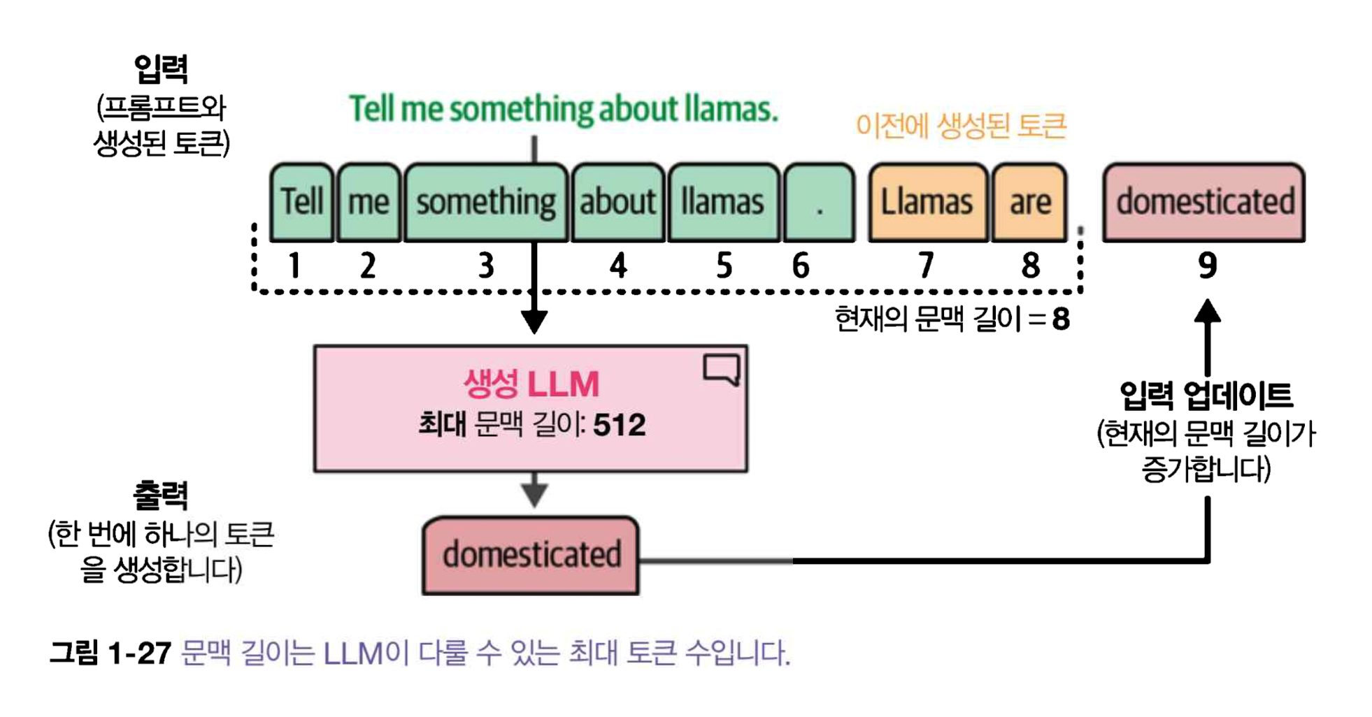 문맥 길이는 모델이 처리할 수 있는 최대 토큰 수를 나타낸다. 문맥길이가 클 경우 LLM에 문서를 통채로 전달 할 수 있고, 이런 모델은 자가회귀 성질을 가지고 있어 새로운 토큰이 생성됨에 따라 현재 문맥의 길이가 증가한다.