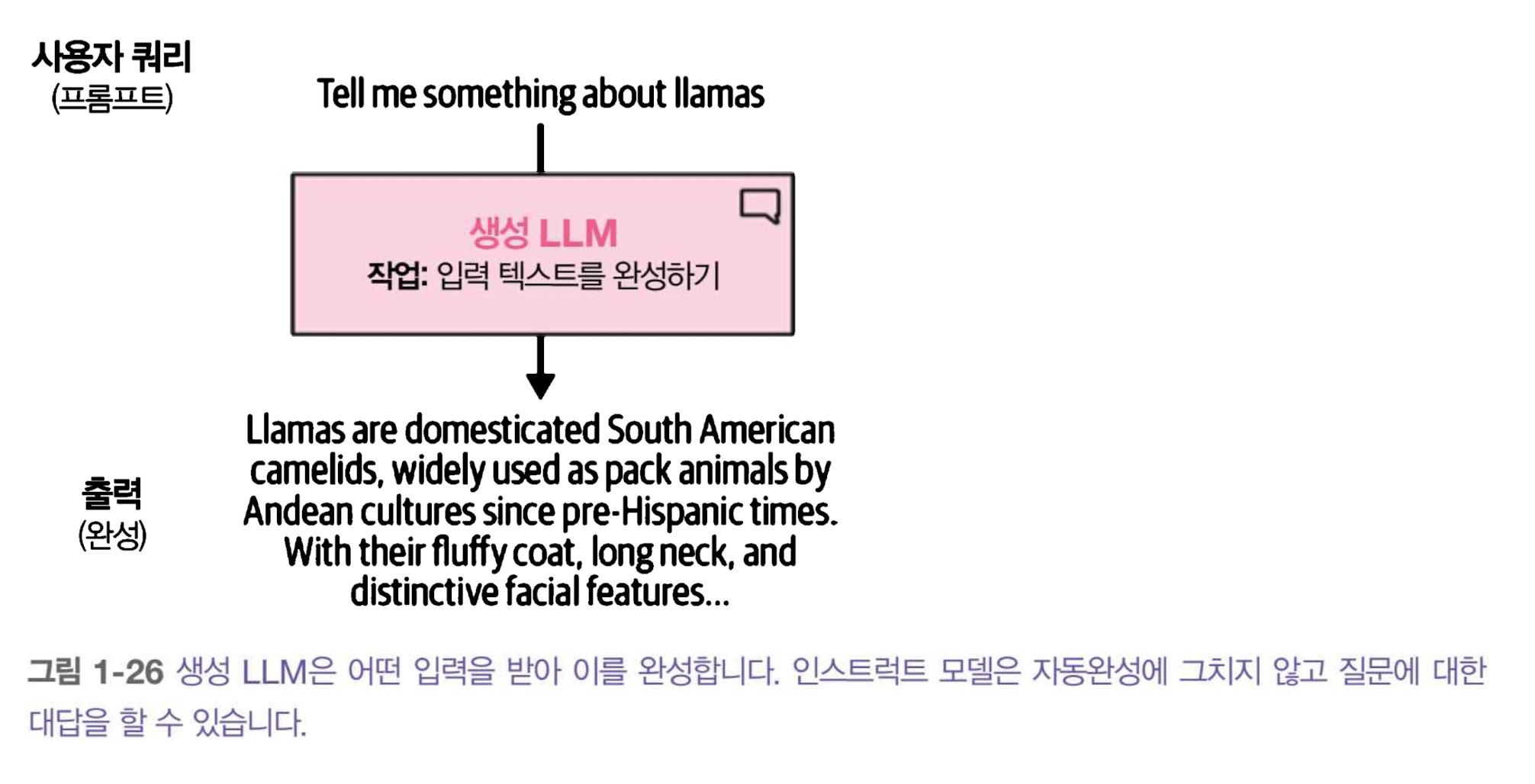 - 이런 모델을 미세튜닝하여 지시를 따르는 인스트럭트 모델(Instruct Model) 또는 채팅 모델(Chat Model)을 만들 수 있다.