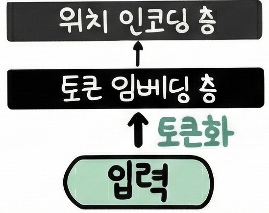 - 위치 인코딩 층을 통해 토큰의 위치 정보를 담고 있는 위치 임베딩을 추가해 모델에 입력할 임베딩 생성